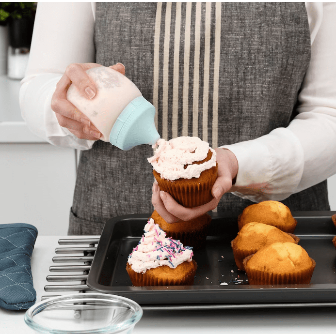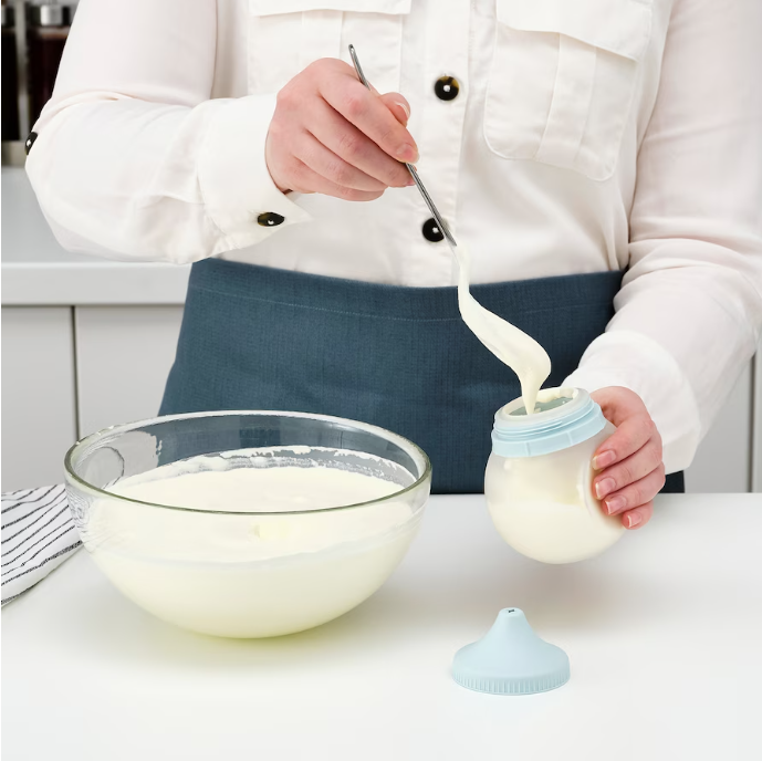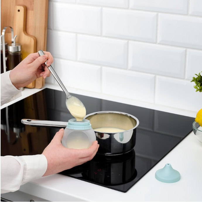 Fill the silicone base up to 250 ml (8oz) with, for example, whipped cream or vanilla custard and screw on the lid, ready to go.