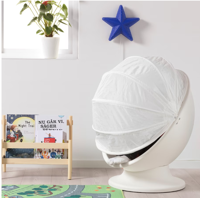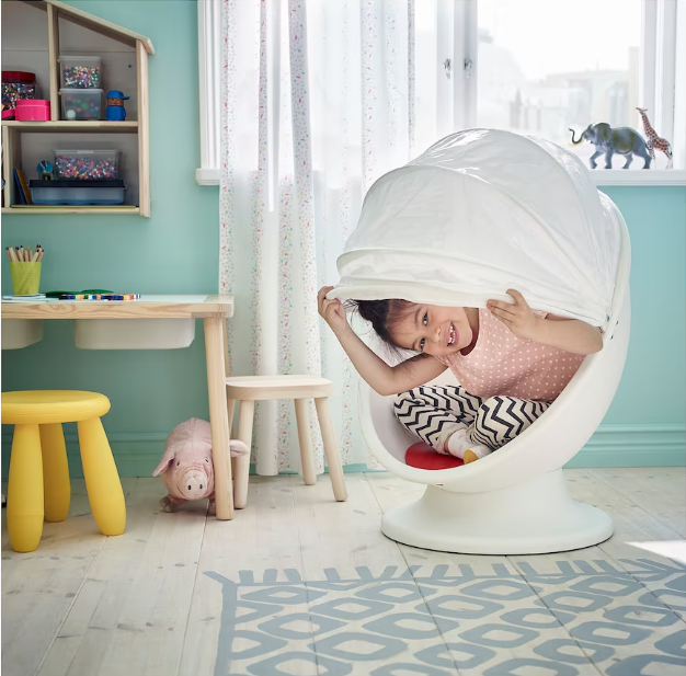 With the hood pulled down the armchair is a secret hiding-place for the child.