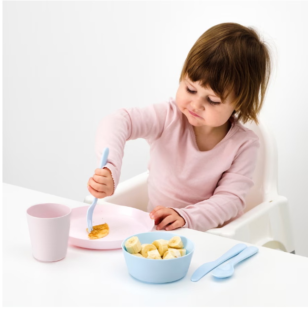 The plate features a tall rim to facilitate food retention for children. It is also stackable for efficient storage. Its vibrant colors, durability, and texture make it ideal for little ones who are learning to eat independently.
