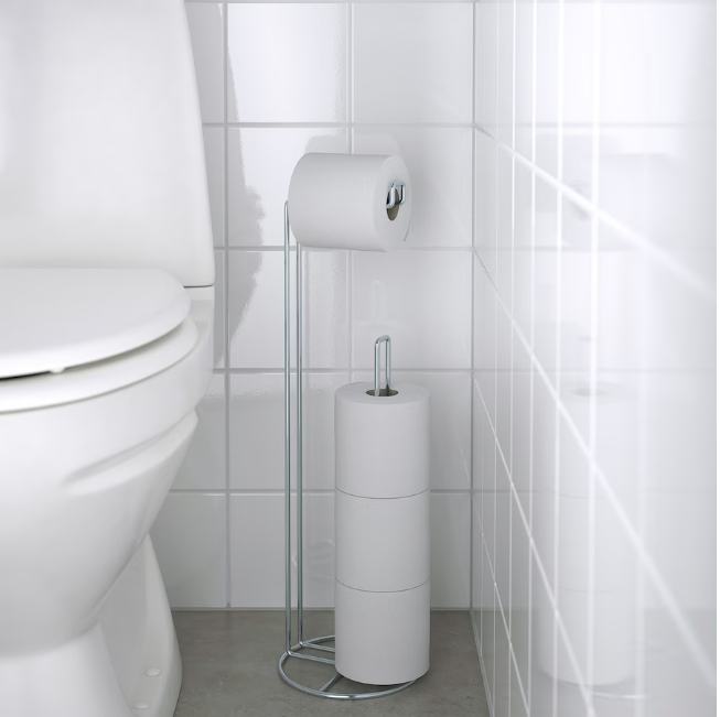 KROKFJORDEN series gives you maximum organization with minimum fuss. This holder keeps the toilet paper at a convenient height and all the spare rolls handy. Best of all, no drilling is needed!