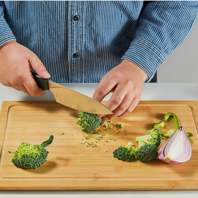 The sturdy blade makes it easier to divide and chop, for example, meat and root vegetables.