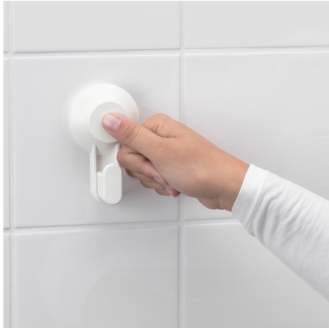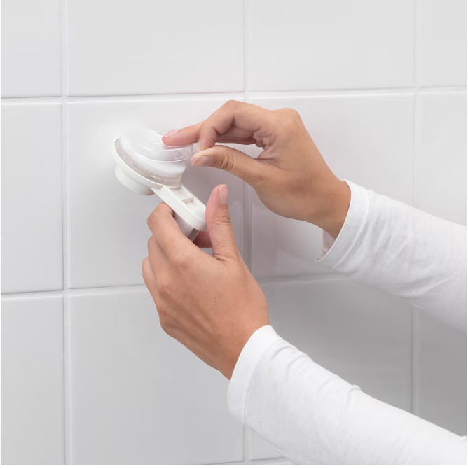 Water can effortlessly drain through the holes on the bottom of the shelf. Assembly is a simple one-push process - just clean the wall surface and push to attach, with no tools required. When it's time to remove, a credit card (or similar) can easily be used to insert between the suction cup and wall. Smooth surfaces such as glass or tiles are securely held by the suction cups with no unsightly holes or marks left behind.