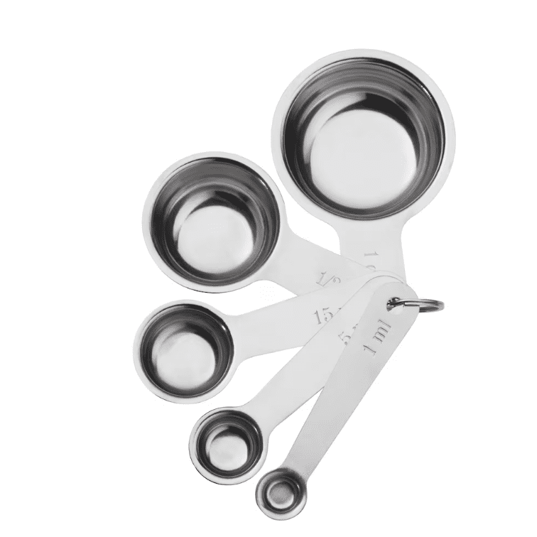 Nothing against measuring by eye, but exact measurements make it easier to get the right taste. These 4 measuring cups handle most recipes, the dimensions fit in each other and they can be hung on a hook.