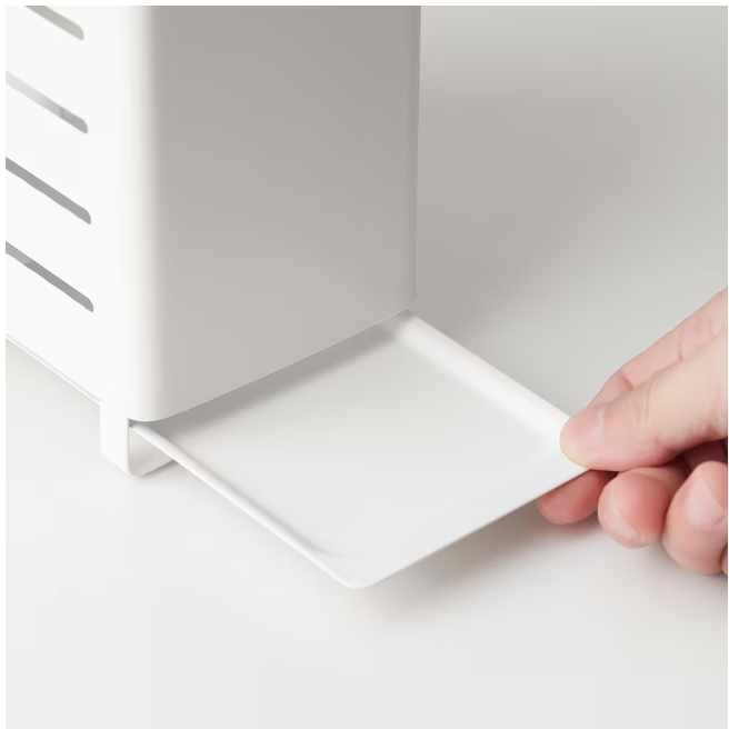 To keep the inside dry and prevent mold from building up, there is a pull-out tray at the bottom that collects water from wet utensils.