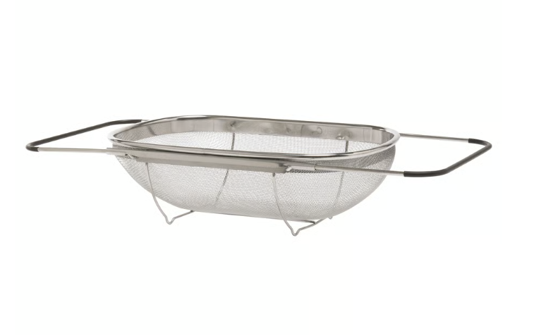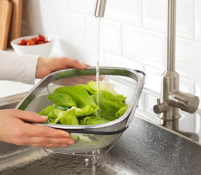 This stainless steel colander from IKEA is the perfect kitchen tool for rinsing salads and draining pasta. With adjustable handles, it can easily hang over the sink for convenience. Plus, it's dishwasher-safe for easy cleaning. Simplify your cooking routine with this durable and versatile colander.