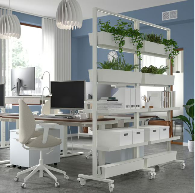 Combine with MITTZON frames with castors and add shelves and/or containers to create a room divider and/or a wall of greenery.