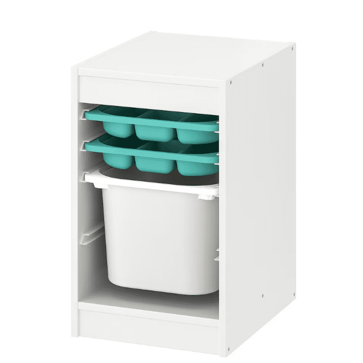IKEA TROFAST Storage combination with box/trays, white/turquoise, 34x44x56 cm