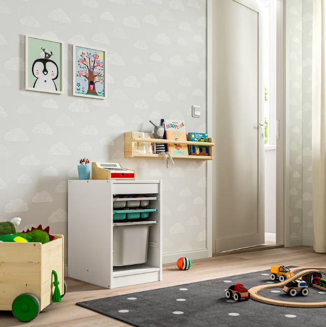 This IKEA TROFAST Storage combination is the ideal solution for providing your children with ample storage. The combination includes a solid wooden frame and lightweight plastic boxes, cool mesh boxes and trays, in a stylish white and turquoise finish. With a size of 34x44x56 cm, it's perfect for keeping your children's items tidy.