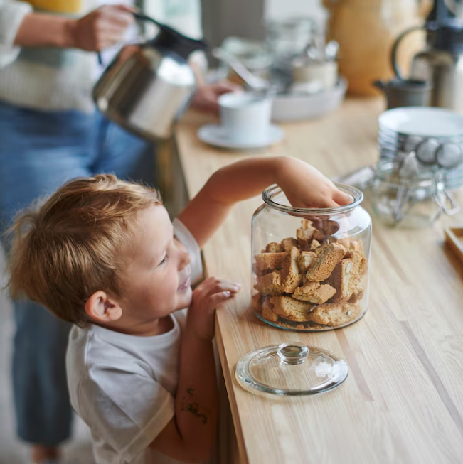 The transparent jar makes it easy to find what you are looking for, regardless of where it is placed.
