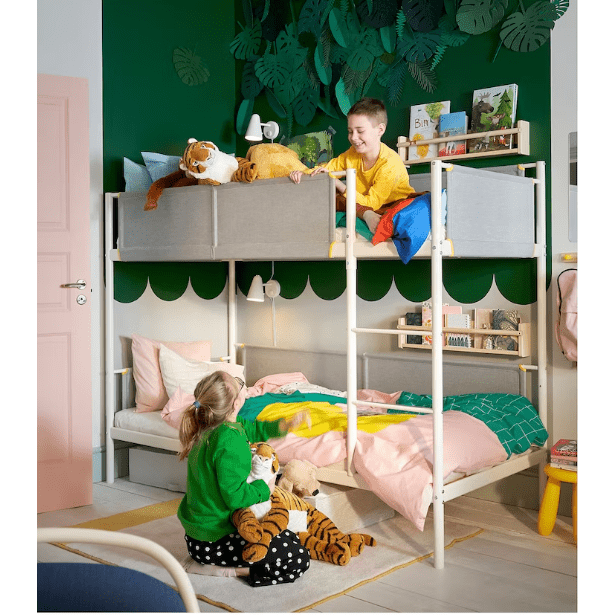 Soft shapes and fabric guardrails. These are the details that make this bunk bed unique. Perfect when you need space for two, but have limited space. Pimp it with accessories from the MÖJLIGHET series.