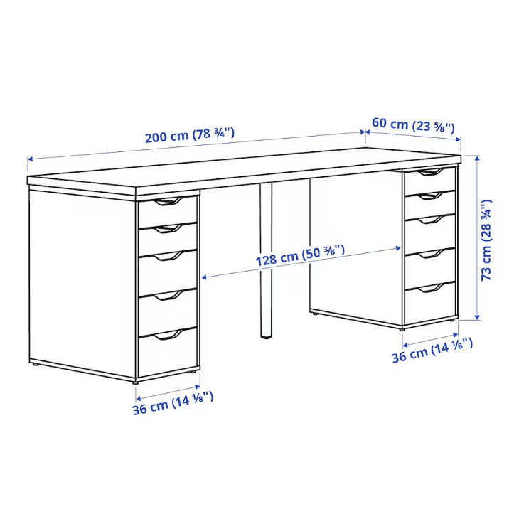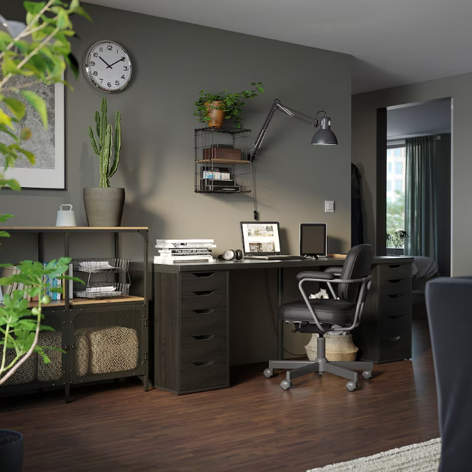 LAGKAPTEN / ALEX Desk, black-brown/black, 200x60 cm