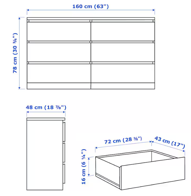 Malm Chest of 6 drawers, black-brown, 160x78 cm
