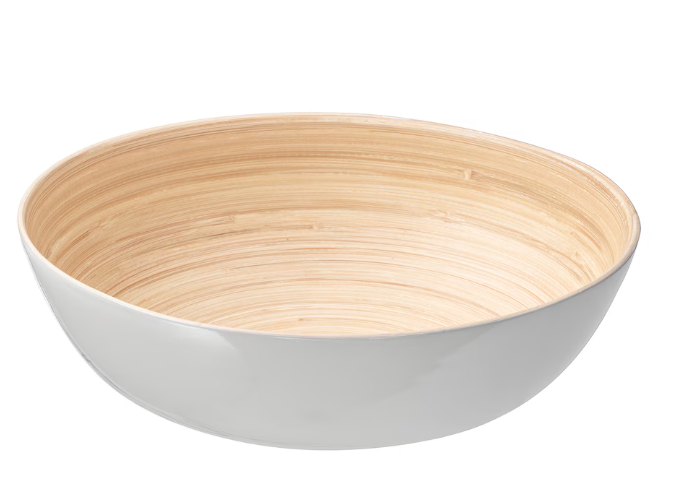 RUNDLIG Serving bowl, bamboo/white, 30 cm