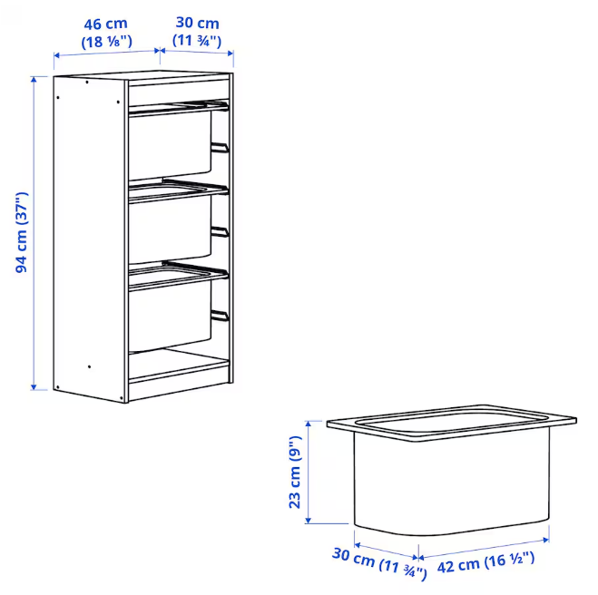IKEA TROFAST Storage combination with boxes, 46x30x94 cm