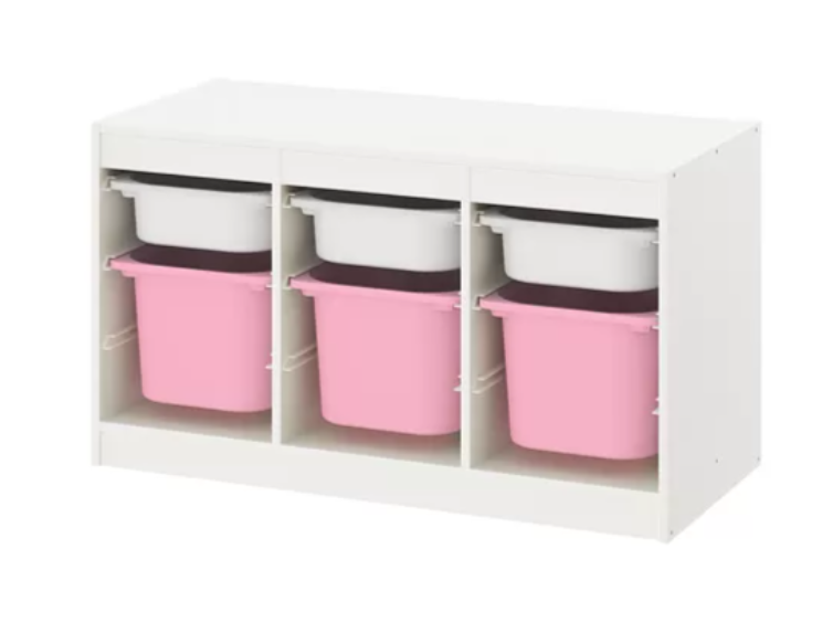 IKEA TROFAST Storage combination with boxes, white white/pink, 99x44x56 cm