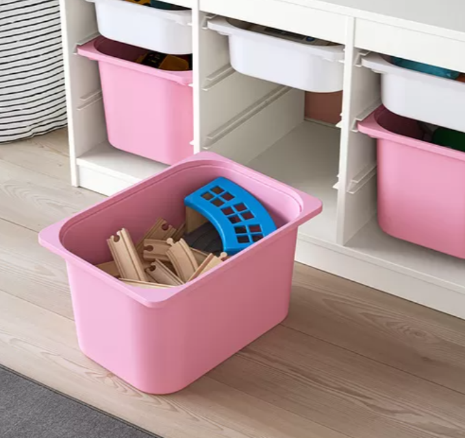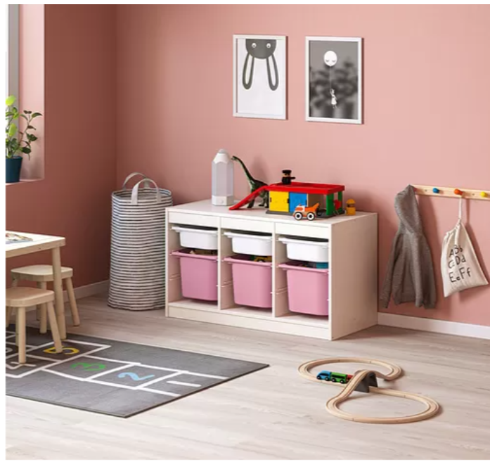 Children need room for play – and good storage for toys like TROFAST – a series of sturdy wooden frames and lightweight plastic boxes that your child can easily slide out, carry and put back again.