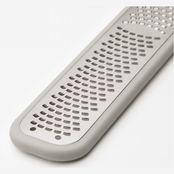 Introducing UPPFYLLD - a handheld grater designed for effortless grating of lime and lemon zest, nutmeg, and bitter almond. It's perfect for adding cheese to pasta, pizza, or gratins, thanks to its lightweight, user-friendly design and versatile hole sizes. The detachable plastic protector not only maintains the sharpness of the grater, but also ensures safety from sharp edges. Equipped with a convenient handle for easy hanging and storage.